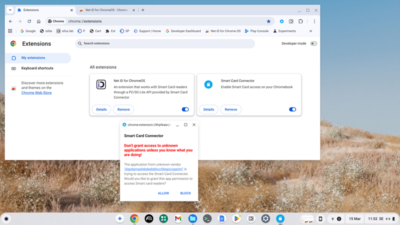 - When "Net iD for ChromeOS" is installed you will be prompted to allow it to hook into Googles 'Smart Card Connector'