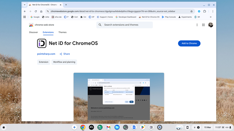 Now its time for Net iD for ChromeOS (no longer an app but an extension, apps are depricated)- Browse to Chrome Web Store and search for "Pointsharp" or "Net iD" or use the direct link below