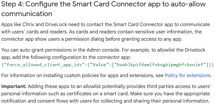 Start by installing Googles 'Smart Card Connector'. You will see a warning about apps but never mind, its an extension# Version 4.0.2 of the connector was shipped by Google 2025-12-03 (says 3.0 in Chrome Web Store but that is wrong)