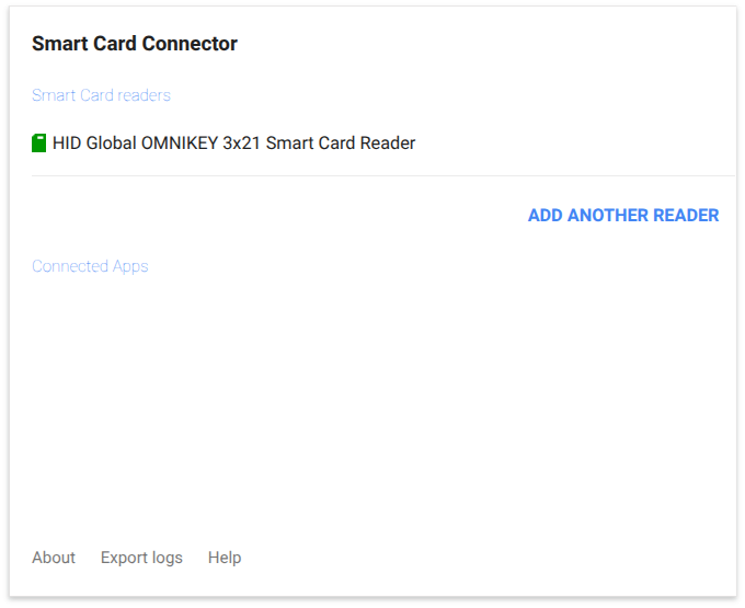 Attach a smart card reader (USB-C or USB-A) or insert a Yubkey and make sure you see it when opening the connector