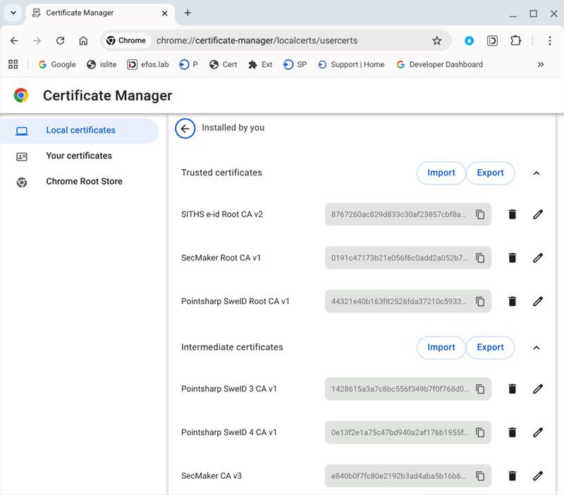 Before you install Net iD for ChromeOS you must import the certificates for the RootCA and the IssuingCA corresponding to whats on your cards/tokens.- You do this by starting the Chrome browser and then type chrome://certificate-manager in the URL field