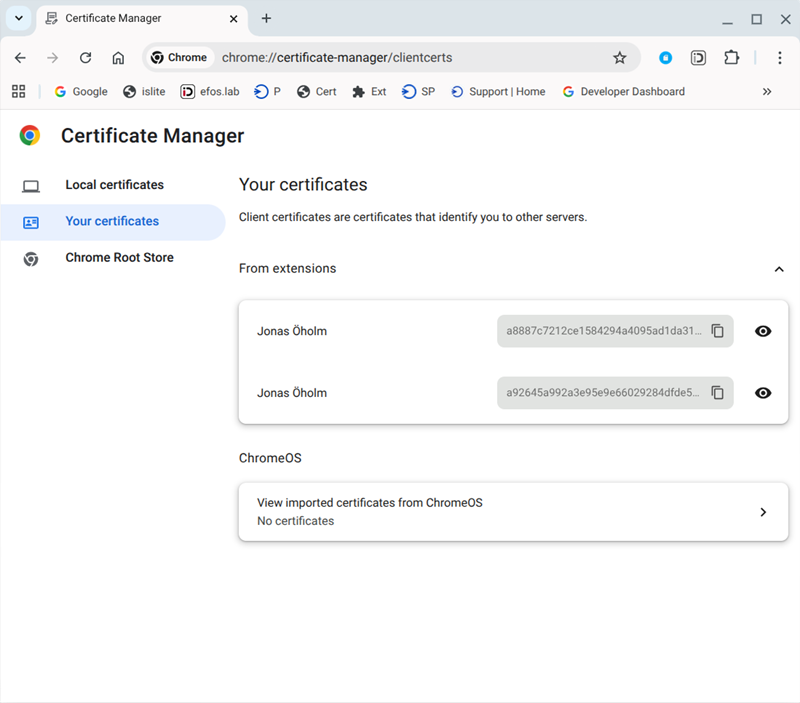 - Under "Your certificates" and "From extensions" you should be able to see your certificate(s)